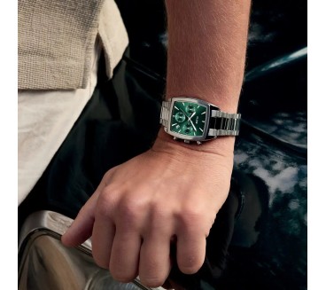 Design Moderne et Élégant : Cadran vert unique avec détails subtils pour un look contemporain. Aiguilles et index argentés offrant un contraste parfait pour une lisibilité optimale.