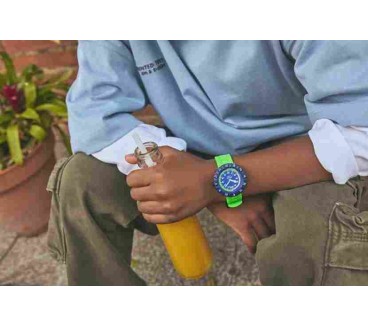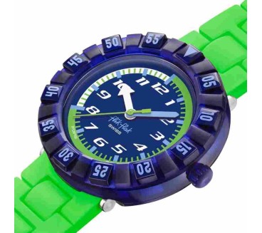 La Flik Flak Neonbrick ZFCSP132 est une montre éducative suisse au design provocation. Idéale pour les enfants amateurs de vitesse et de style, elle associe un bracelet en silicone vert aux motifs inspirés de briques et une lunette rotative texturée pour éveiller la curiosité. Son boîtier en plastique bleu (diamètre ~36,7 mm) enveloppe un cadran bleu avec chiffres arabes clairs, des aiguilles contrastées et un mouvement quartz suisse fiable. Résistante aux éclaboussures (3 ATM), légère (19 g) et conçue pour durer, elle intègre également un puzzle d’apprentissage en carton dans la boîte pour stimuler l’apprentissage.