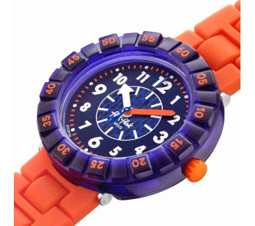 La montre Flik Flak Orangebrick (réf. FCSP103) est pensée pour les enfants qui veulent apprendre à lire l’heure avec style. Son boîtier en plastique bleu vif, d’un diamètre d’environ 37 mm, séduit grâce à son contraste lumineux entre le cadran bleu et les accents orange. Le cadran affiche des chiffres arabes clairs avec des aiguilles colorées — le tout conçu pour l’apprentissage et la lisibilité. Le bracelet en silicone orange apporte confort et durabilité pour la vie active des enfants. Animée par un mouvement quartz suisse fiable et protégé par un boîtier plastique robuste, cette montre est résistante aux éclaboussures (étanchéité jusqu’à 3 bar / ≈ 30 m) — idéale pour l’usage quotidien. En bref, la Orangebrick combine amusement, apprentissage et qualité horlogère suisse dans un format adapté aux enfants.