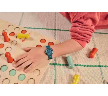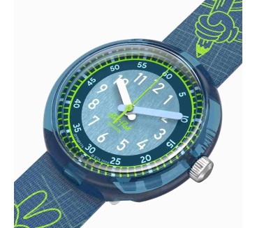 La montre Flik Flak Code Talk (réf. FPNP174) offre une excellente combinaison entre fun, apprentissage et qualité suisse. Conçue pour les enfants, cette montre dispose d’un boîtier d’environ 31,85 mm qui convient parfaitement aux poignets jeunes. Le design se démarque par un motif de “signes secrets” sur le bracelet en textile bleu, stimulant l’imagination. Le cadran bleu clair met en valeur des chiffres arabes blancs facilement lisibles, ainsi que des aiguilles contrastées pour simplifier l’apprentissage de l’heure. Le mouvement est quartz suisse, garant de fiabilité. La montre est étanche jusqu’à 3 bar (~30 m), adaptée aux éclaboussures du quotidien. Robuste, ludique et éducative, la Code Talk est parfaite pour les enfants qui commencent à découvrir la notion du temps tout en affichant un style original.