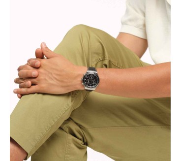 Dotée d’un tout nouveau bracelet en cuir avec un motif alligator estampé et des coutures blanches contrastantes, cette montre NEW IRONY CHRONO en acier inoxydable présente un élégant cadran noir et une lunette gravée dans un boîtier en acier inoxydable brossé aux détails polis.