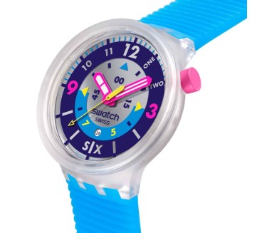 La Swatch Neon Hielo SB01K400 marque le retour audacieux d’un style emblématique des années 90, revisité pour aujourd’hui. Avec son boîtier transparent de 47 mm, son bracelet silicone bleu vif, et son cadran violet imprimé rehaussé de touches néon-rose, jaune et turquoise, cette montre incarne énergie et originalité. Animée par un mouvement à quartz suisse, elle garantit précision et fiabilité. Étanche jusqu’à 3 bar (≈ 30 m), elle convient à un usage quotidien tout en affichant un look affirmé. Un mélange parfait de design rétro-néon et de performance moderne — pour celles et ceux qui osent se démarquer.