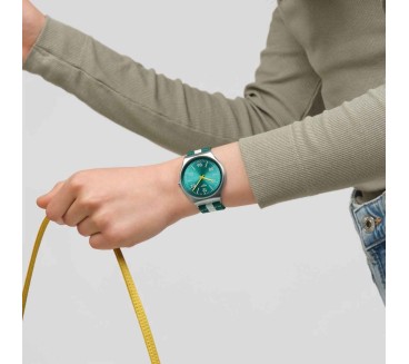 La Swatch SS07S149 “Casual Stripe” est une montre élégante et légère de la collection Skin Irony, combinant design moderne et confort au quotidien. Dotée d’un boîtier en acier inoxydable fin de 42 mm, d’un mouvement quartz suisse fiable et d’un bracelet textile vert rayé, elle offre un look casual très tendance. Son cadran vert sun-brushed contraste avec des aiguilles jaunes luminescentes, pour une lisibilité optimale. Parfaite pour un style décontracté ou une tenue quotidienne stylée. La Swatch SS07S148 “Beside The Sea” est une montre Swiss Made ultrafine de la collection Skin Irony, alliant élégance contemporaine, confort et style marin. Avec son cadran bleu sunray sophistiqué, ses aiguilles luminescentes contrastantes et son bracelet textile rayé aux tons bleu foncé, bordeaux et clair, elle capture l’esprit décontracté des balades côtières. Équipée d’un boîtier en acier inoxydable de 42 mm et d’un mouvement quartz fiable, cette montre analogique est parfaite pour un usage quotidien chic et casual.