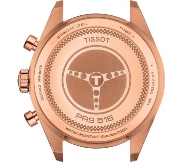 La montre Tissot PRS 516 (réf. T1316173608200) incarne l’esprit sportif et raffiné à la fois. Son boîtier de 45 mm en acier inoxydable avec traitement PVD or-rose véhicule une esthétique résolument haut de gamme. Le cadran gris charbon propose un affichage clair de chronographe à trois compteurs, ainsi qu’un tachymètre sur la lunette pour une allure inspirée du sport automobile. Le bracelet en cuir gris perforé évoque les gants de pilote tandis que le fond du boîtier peut présenter un motif « jante de roue ». Animée par un mouvement quartz suisse, cette montre garantit précision, efficacité et fiabilité. Avec une étanchéité jusqu’à 10 bar / 100 m, elle est aussi conçue pour résister aux usages quotidiens et sportifs. Le modèle T1316173608200 est ainsi idéal pour ceux qui cherchent une montre de sport chic, mélangeant performance, design technique et élégance.