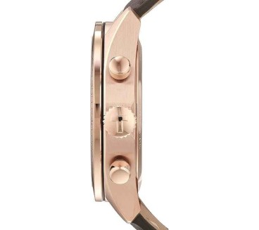 Boîtier acier inoxydable 45 mm PVD or-rose : stature sportive et élégante.